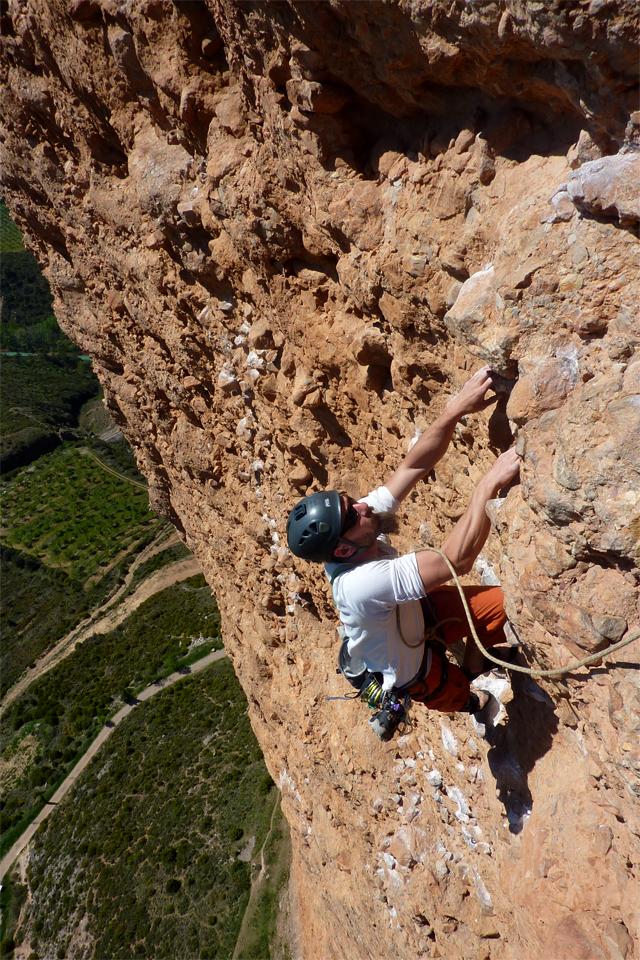 Das ist die Geschichte vom Unterarmgulasch… Schon öfter bestaunte ich die Fotos vom supersteilen Konglomerat in der Spanischen Sonne. Bei einer Feier im November 2010 erzählte uns dann Andi Ferstl, dass er erst vor kurzem dort klettern war. Seine Erzählungen ließen unsere Finger feucht werden 🙂 Daraufhin beschlossen wir uns das selber mal anzuschaun.